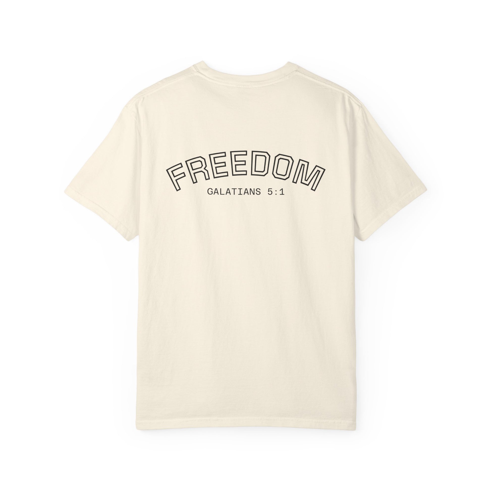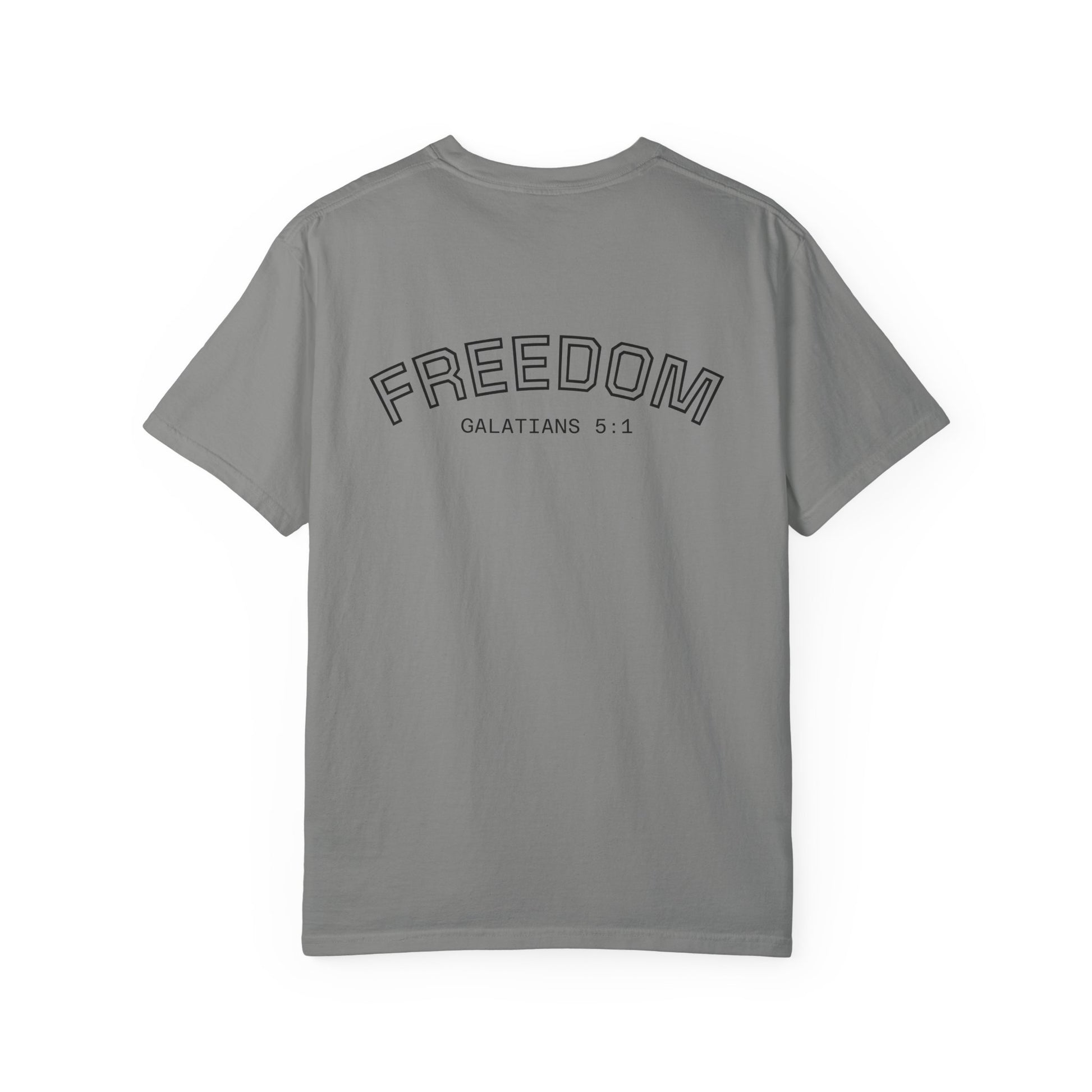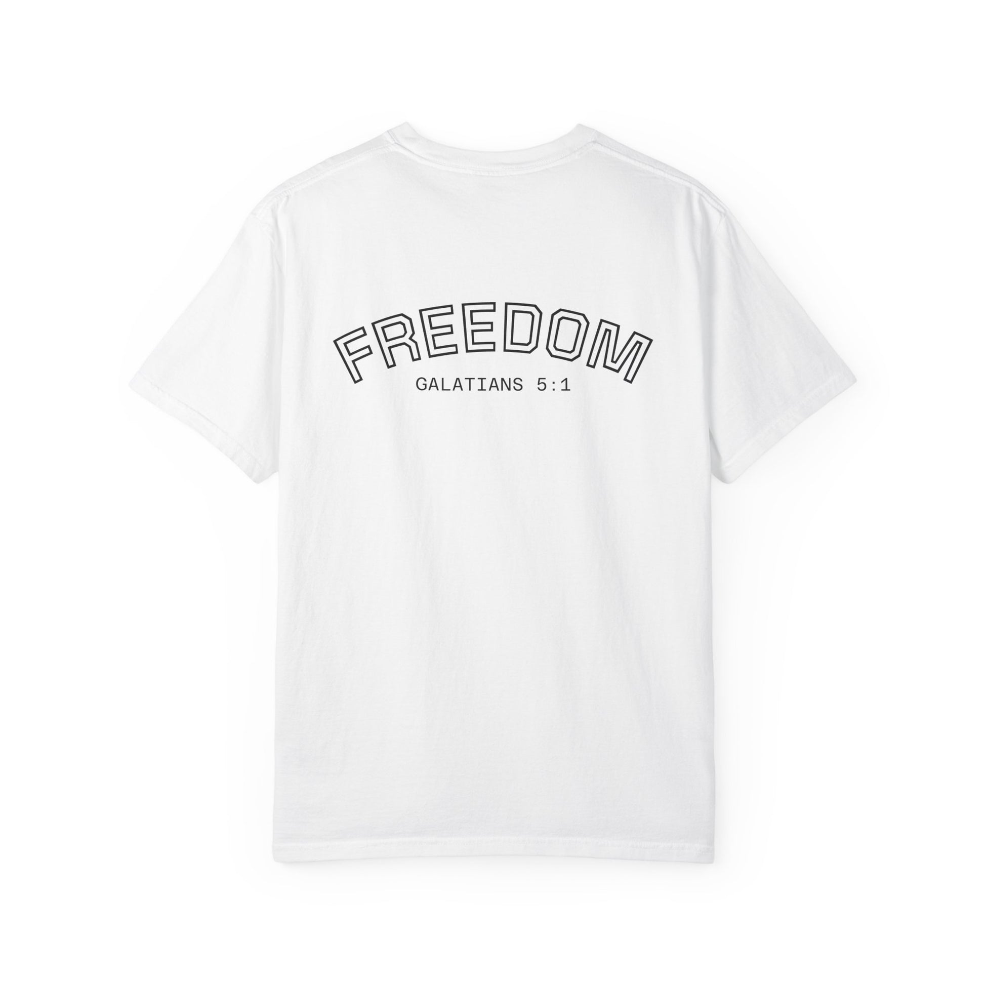This T-shirt features Charlie Kirk's Inspiration on Freedom quote from Galatians 5:1. It exudes a sense of empowerment and inspiration, perfect for those who value freedom and positivity in their lives. Ideal for those celebrating Independence Day, Memorial Day, or any patriotic occasion.